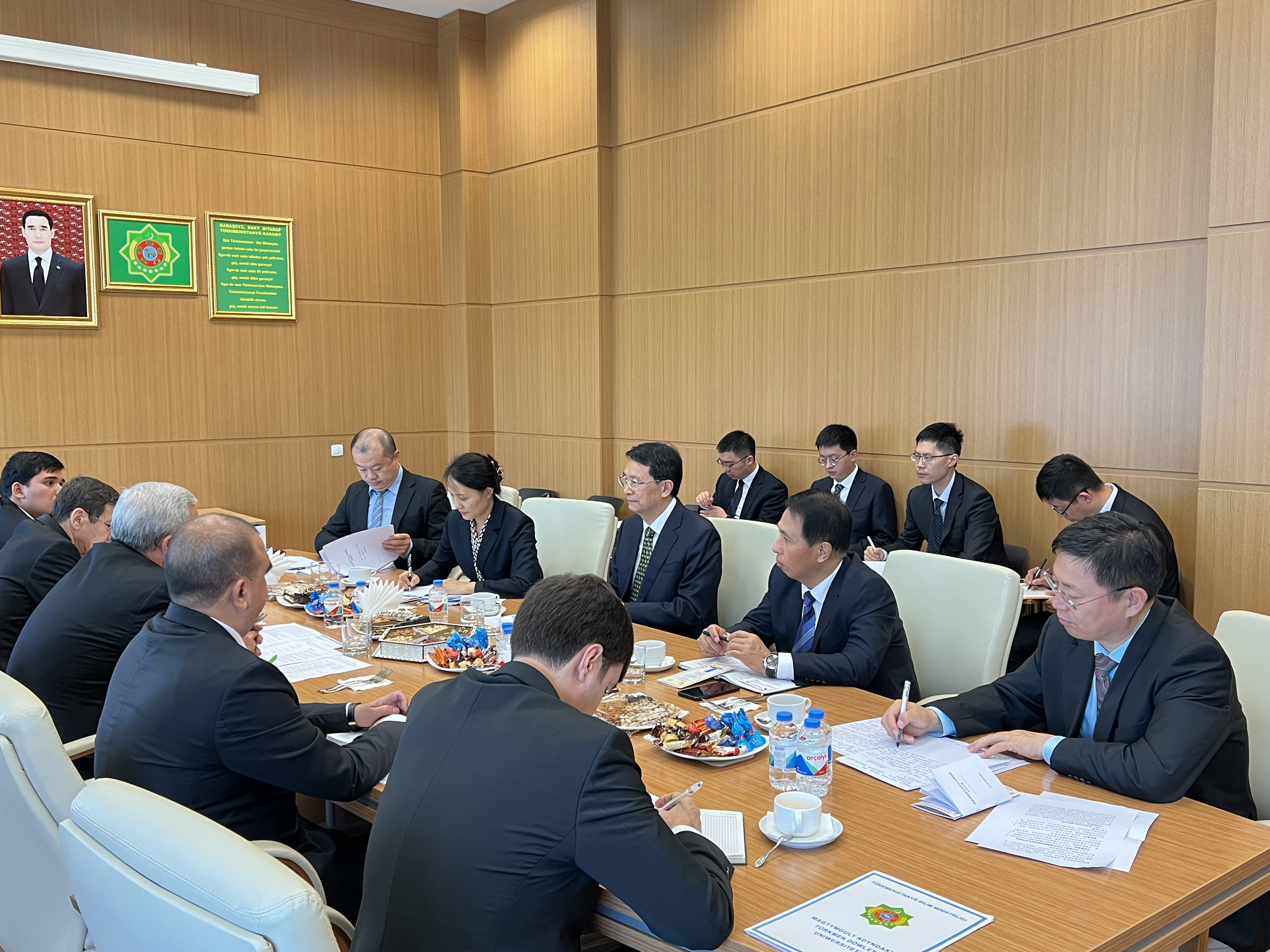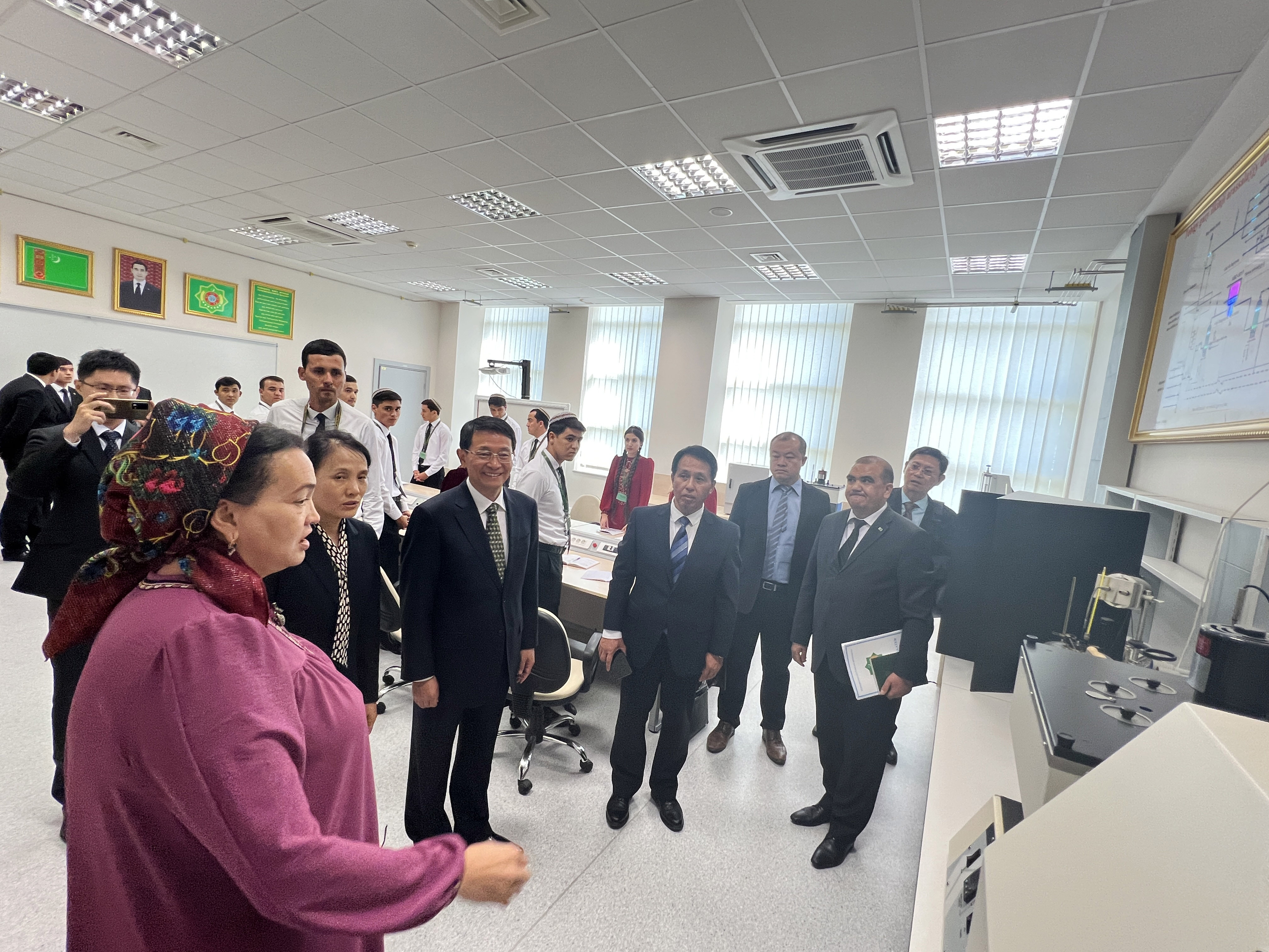 2023年9月11日,李越参赞陪同国合署邓波清副署长会见土油气大学校长阿塔曼诺夫,就加强两国文化领域合作、加快推动鲁班工坊落地等问题交换意见,并考察学校基础设施建设情况。
