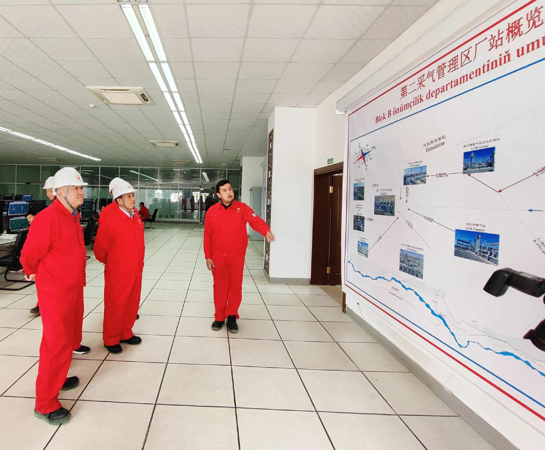 4月1日—3日,李越参赞带队赴阿姆河天然气勘探开发项目现场考察调研,重点了解项目党建、安全、生产和天然气保供等方面情况。中石油阿姆河天然气勘探开发(北京)有限公司董事长陈怀龙率公司领导班子陪同考察。